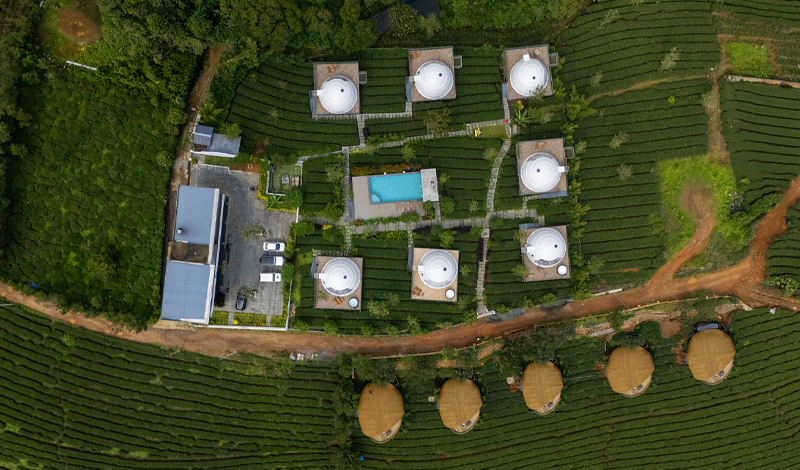 Monticle Glamps is spread across 7 acres, surrounded by lush tea plantations, valleys, and meadows.