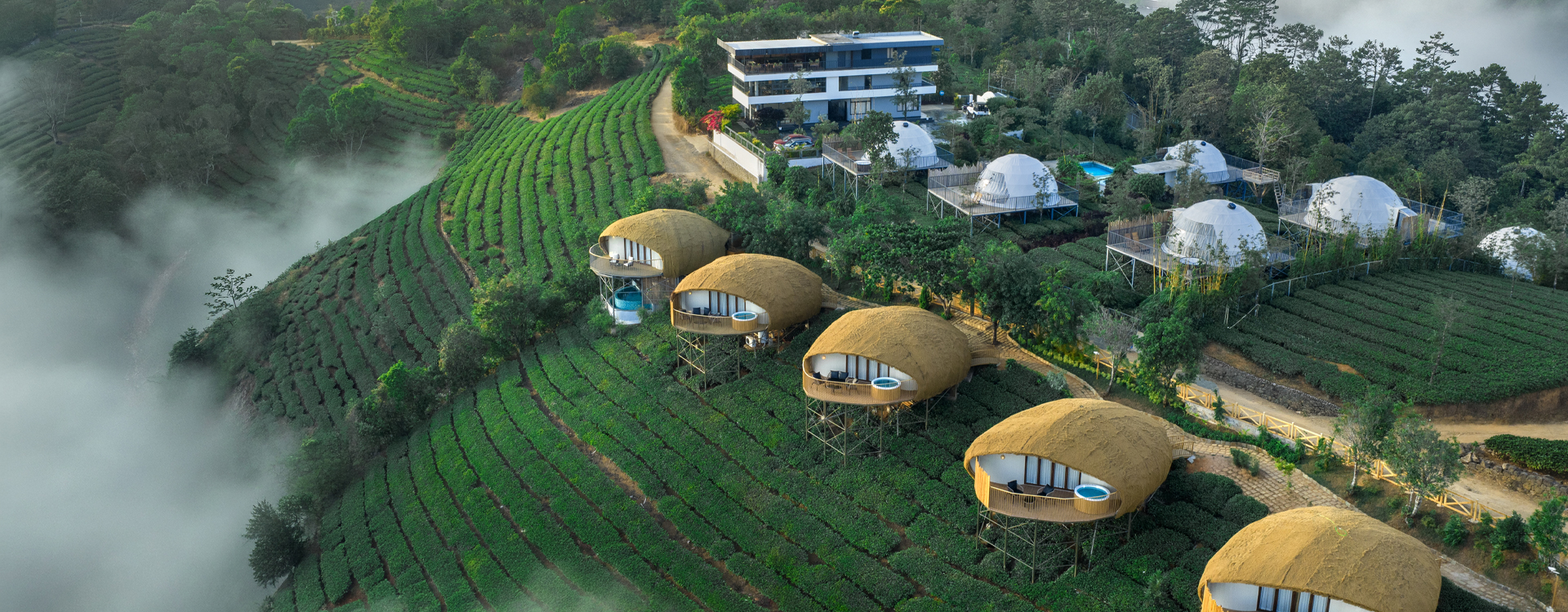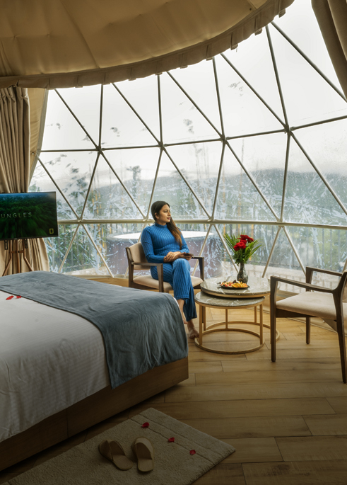 At Monticle Glamps, Vagamon, every stay is crafted to blend the charm of nature with the elegance of premium comfort. Our accommodation collection features four unique categories — Luxury Glamps, Luxury Jacuzzi Glamps, Eagle Eye Cottages, and Eagle Eye Private Pool Villas — each designed to offer romance, family comfort, and unforgettable getaways. Experience glamping, Bali-inspired architecture, and breathtaking mountain views in the misty hills of Kerala.